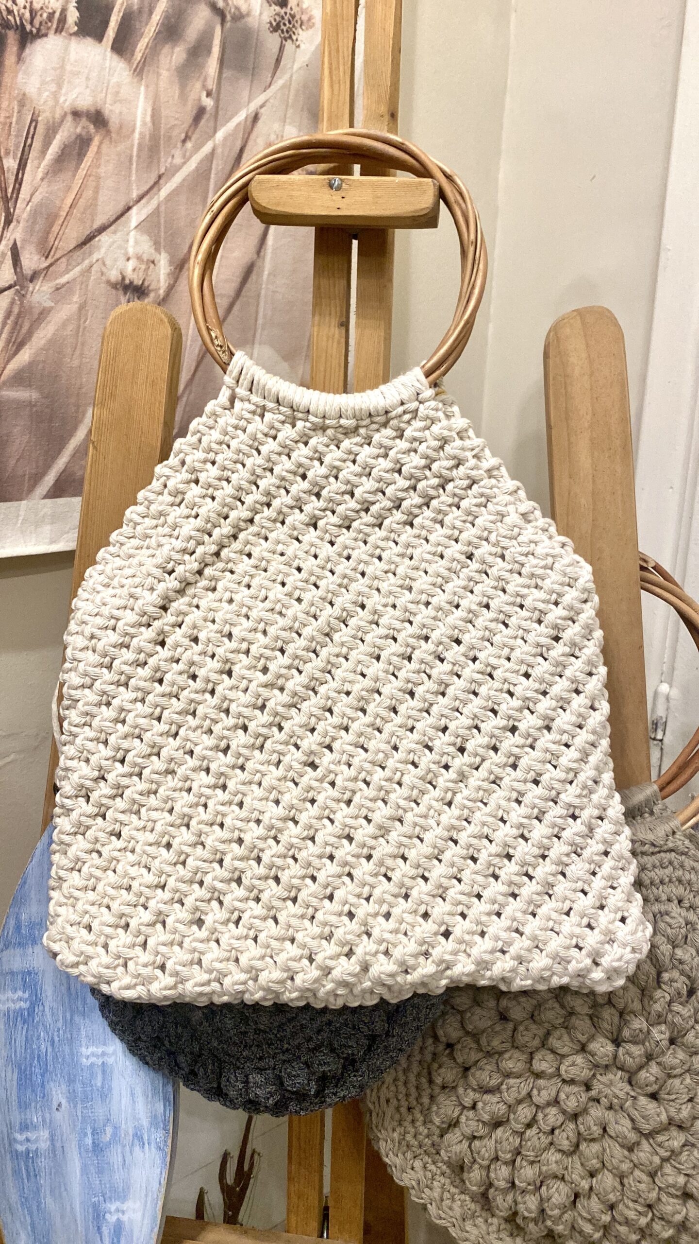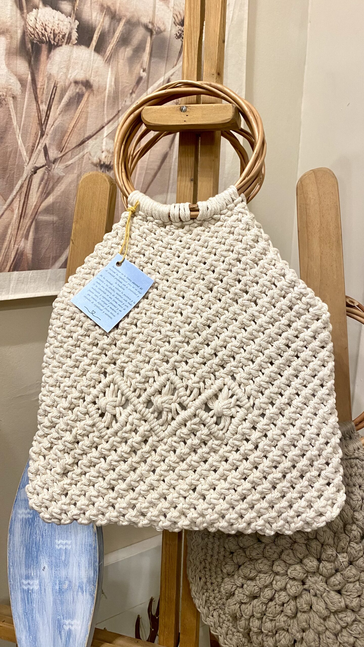 Cartera modelo Su – Tejida en hilo macrame, con manijas de mimbre